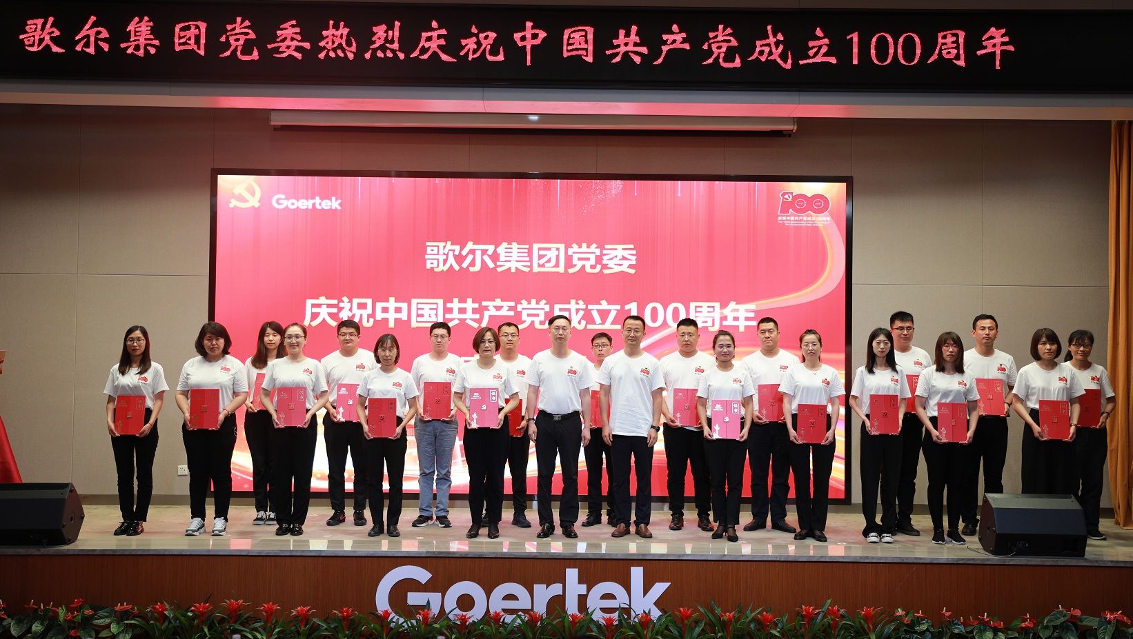 6月30日,歌尔集团召开庆祝中国共产党成立100周年表彰大会。会议表彰了优秀共产党员,优秀党务工作者,以及优秀党支部,歌尔党员齐唱党歌,共同宣誓,参观主题展馆,向建党百年献礼,一起回首奋斗路,启航新征程。